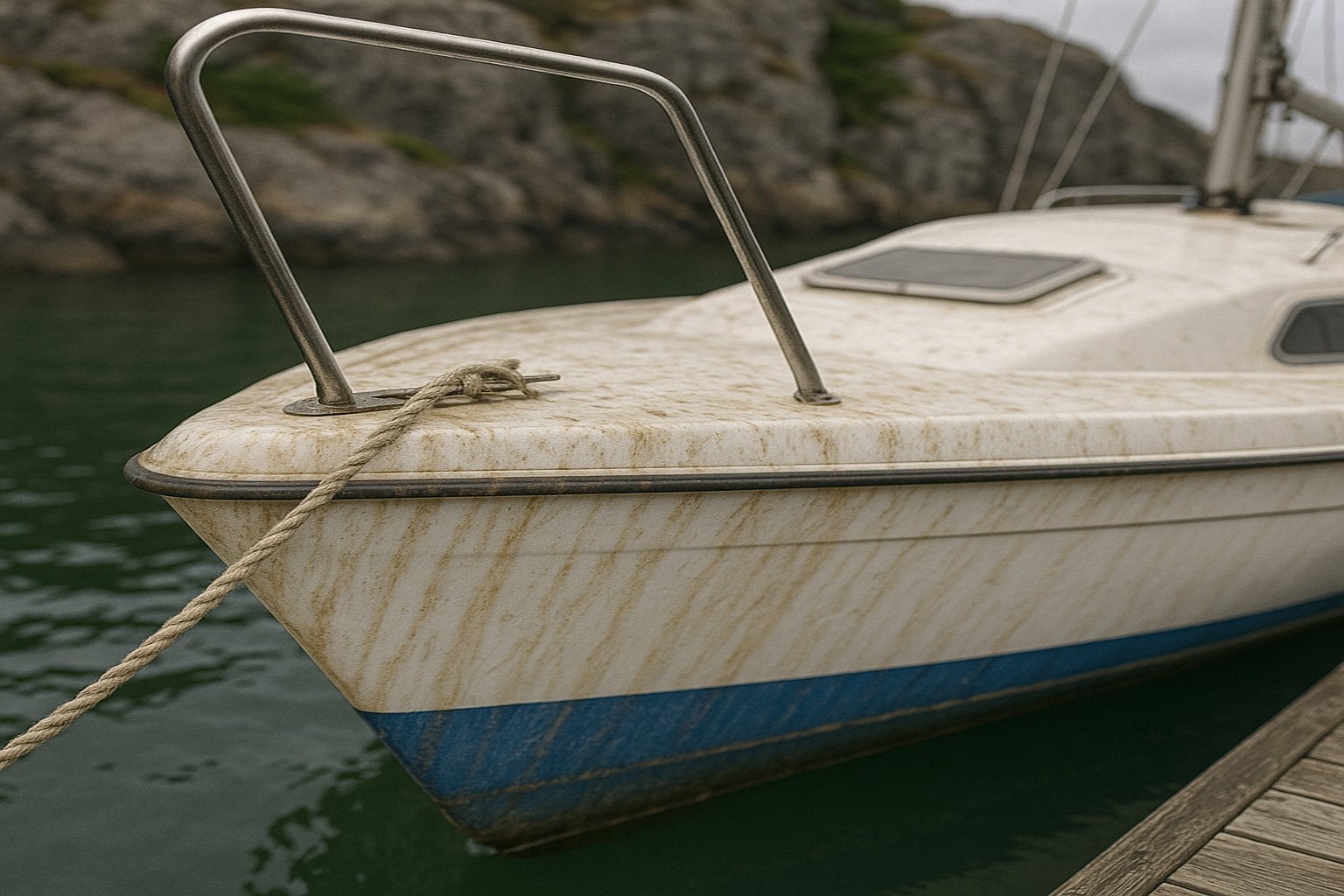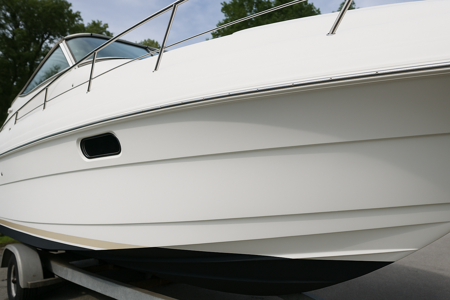 Polishing and compounding to revive faded gel coat, restore gloss, and protect against UV damage.
